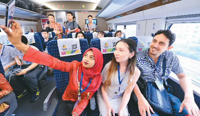 6月17日,100余名留学生从西安出发,乘坐宝兰高铁试运行动车组前往兰州,初次体验即将开通运营的首条贯通新丝路高铁。 |