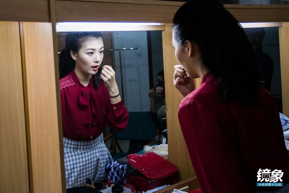 2017年6月,浙江杭州,赵雪在化妆室里补妆,为演出做准备。 视觉中国
