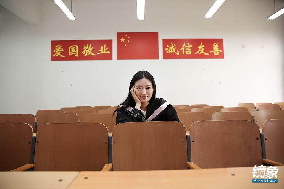 2016年6月8日,河北邯郸,“成语女神”的成员张钰桦拍摄毕业照。张钰桦曾因为参加央视《中国成语大会》在网络上走红,被封为“成语女神”。她与搭档白娟组成“白话灵犀”组合,在6词主题计时对抗中,赛出24秒的好成绩,刷新了此环节的新纪录。 视觉中国