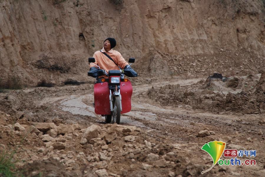 泥泞难行的山路上,贺星龙不知摔过多少跟头。本人供图