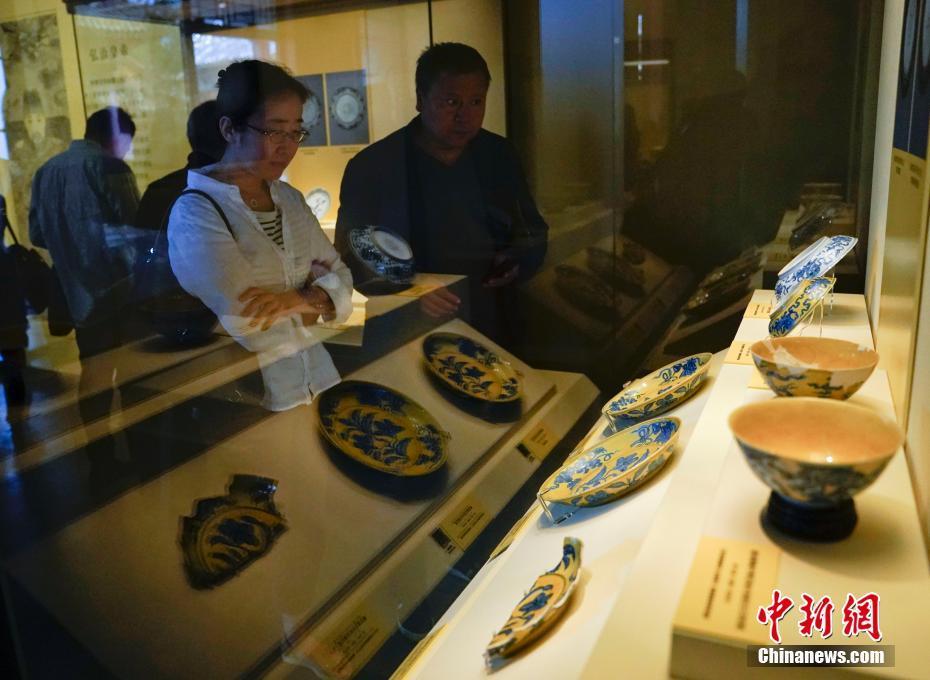 9月29日,由故宫博物院和景德镇市人民政府联合主办的明代御窑瓷器对比系列展之三“景德镇御窑遗址出土与故宫博物院藏传世弘治、正德瓷器对比展”在故宫博物院斋宫展厅开幕。展览旨在通过将明代景德镇陶厂或御器厂遗址出土的落选品(修复件或残片标本)与故宫博物院收藏的传世品以对比的方式进行展示,以较全面地反映明代御窑瓷器所取得的高度艺术成就,为观众朋友提供一个全面了解明代景德镇御窑烧造瓷器品种和欣赏标准器的机会。中新社记者 杜洋 摄