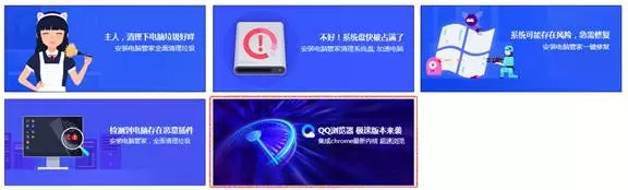 如上两幅图,分别为QQ推广的两个不同版本弹窗,第二组推广程序疑似为第一组程序的升级版。推广程序升级之后,不光界面进行了更改,推广行为的隐蔽性也有所加强。在推广软件上,第一组推广程序仅用来推广QQ浏览器,而第二组主要推广电脑管家,同时我们也在第二组程序资源中发现了QQ浏览器相关的推广资源(见图(2)红框部分)。第二组程序推广行为,如下图所示:
