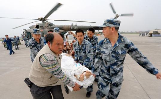 战士们在芦山灾区转移重伤员(来源:中国军网)