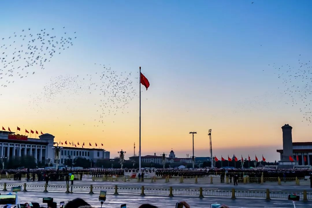 一年365天,天安门广场上每天一定有一面五星红旗和太阳一同升起。
