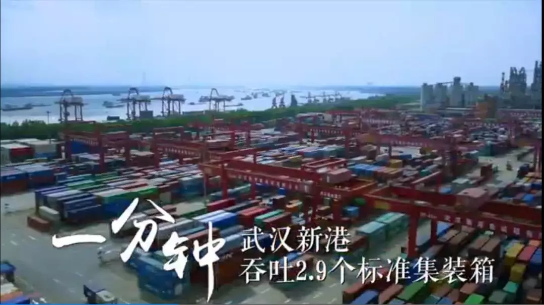 一分钟,武汉新港吞吐2.9个标准集装箱