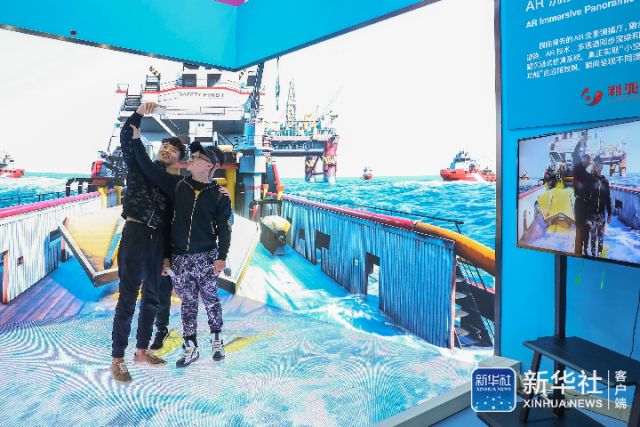 ↑10月9日,参观者在“双创周”北京会场主题展上体验AR沉浸式全景仿真系统。新华社记者张玉薇摄