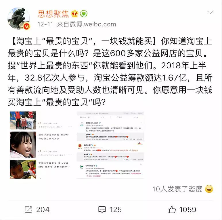 其实,除了一元的宝贝,很多人一直在汇聚点滴力量助力公益,其中有不少刷屏的事件令人感动。