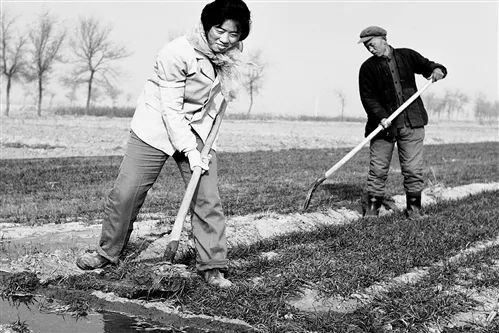 改革开放初期,河北省廊坊市大城县东近北村全靠人工灌溉小麦,沿用着大水漫灌式的落后生产方式。 (摄于1980年12月)