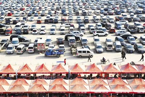 河北省廊坊市大城县集市停车场,赶集上店,走亲访友,小汽车已成当地农民出行的普通交通工具。 (摄于2014年11月)