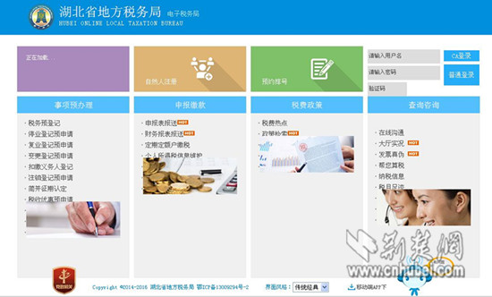 湖北省地税局电子税务局网页截图