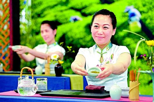 图为:茶艺师精彩的茶艺展示,行云流水般一气呵成,展现出茶文化的无限魅力。(资料图片 记者 李溪 摄)