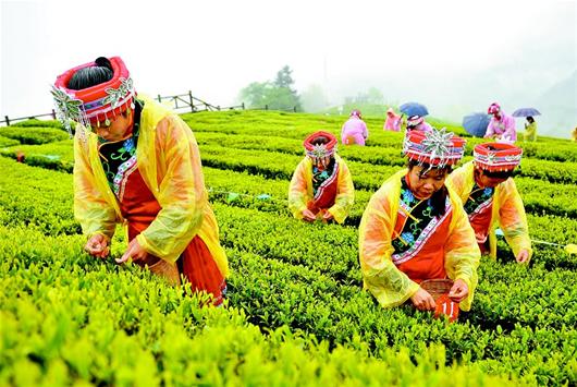图为:9日,在宣恩县第三届伍家台贡茶文化节中,采茶能手在进行采茶比赛。 (记者 张爱虎 视界网 向清华 摄)
