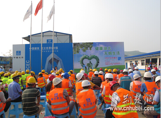 荆楚网消息(记者 黄涛 通讯员 马丽娜)5月31日是第28个世界无烟日,由湖北省卫生计生委、湖北省健康教育所和中国建筑一局(集团)武汉分公司共同主办的“健康湖北 无烟生活”主题巡讲活动在华为武汉研发项目部工地开展,200余名中建一局武汉分公司的项目管理人员和外来务工人员参加了此次活动。