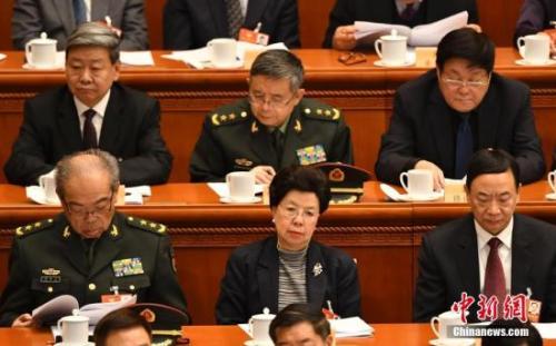 3月8日,全国政协十三届一次会议第二次全体会议在北京人民大会堂举行。图为陈冯富珍委员(前排中)等出席。中新社记者 骆云飞 摄