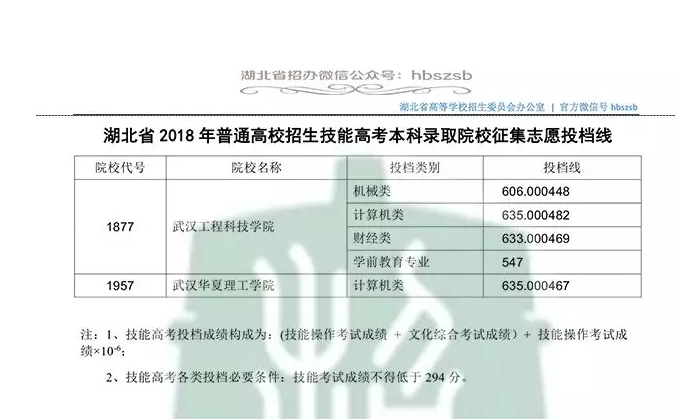 另:湖北省2018年普通高校招生技能高考本科录取院校征集志愿投档线