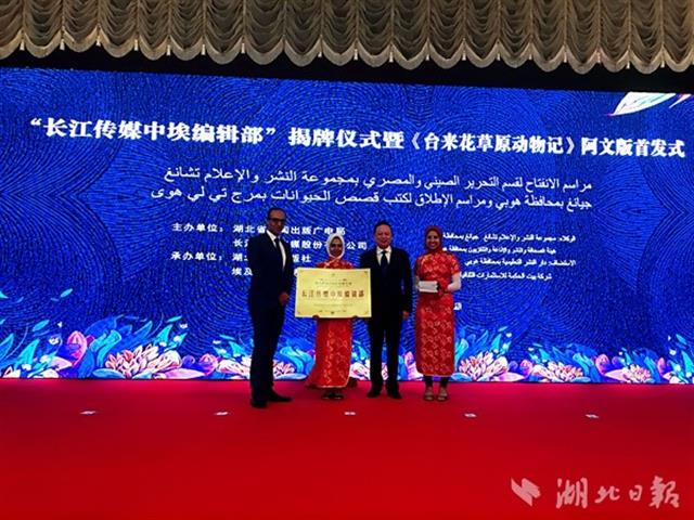 湖北日报讯(记者文俊、通讯员卢欢)7月15日,记者从湖北教育出版社获悉,正在举办的2018非洲湖北传媒周上,“长江传媒中埃编辑部”正式揭牌运营,图书《台来花草原动物记》阿文版首发。