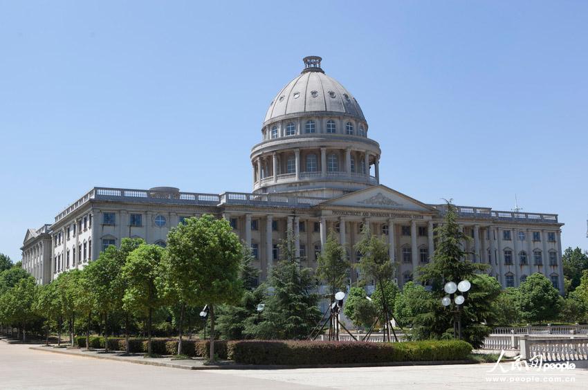 2013年8月9日,湖北武汉商贸职业学院内矗立着仿造各国的文明建筑,白宫造型的教学楼。李鹏/东方IC