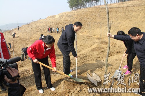 荆楚网消息(记者夏青锋 牛晋阳)3月12日,植树节,黄冈市团凤县贾庙乡杨泗村刘家垴一片热闹。湖北省林业厅、黄冈、团凤四大家部分领导及林业部门100余人来到刘家垴参加义务植树,栽种厚朴、杜仲合计1500株。