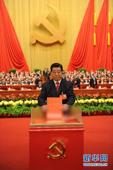 11月14日,中国共产党第十八次全国代表大会闭幕会在北京人民大会堂举行。代表投票选举中央委员会委员、候补委员和中央纪律检查委员会委员。这是贾庆林同志投票。新华社记者李学仁摄