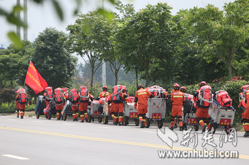 消防官兵徒步行进