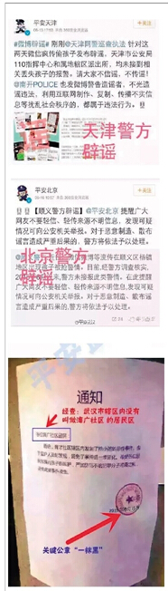 6月13日,天津警方官方微博辟谣“本市没有孩子被抢”,但谣言早已通过千千万万手机扩散到全国,北京、青岛、大连、邯郸、南京等地警方纷纷也跟进辟谣。