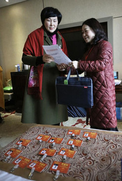 1月6日上午,参加宜昌市六届人大四次会议的代表陆续抵达,到各分组会务组报到,领取会议资料及出席证。 付蓓蓓 摄