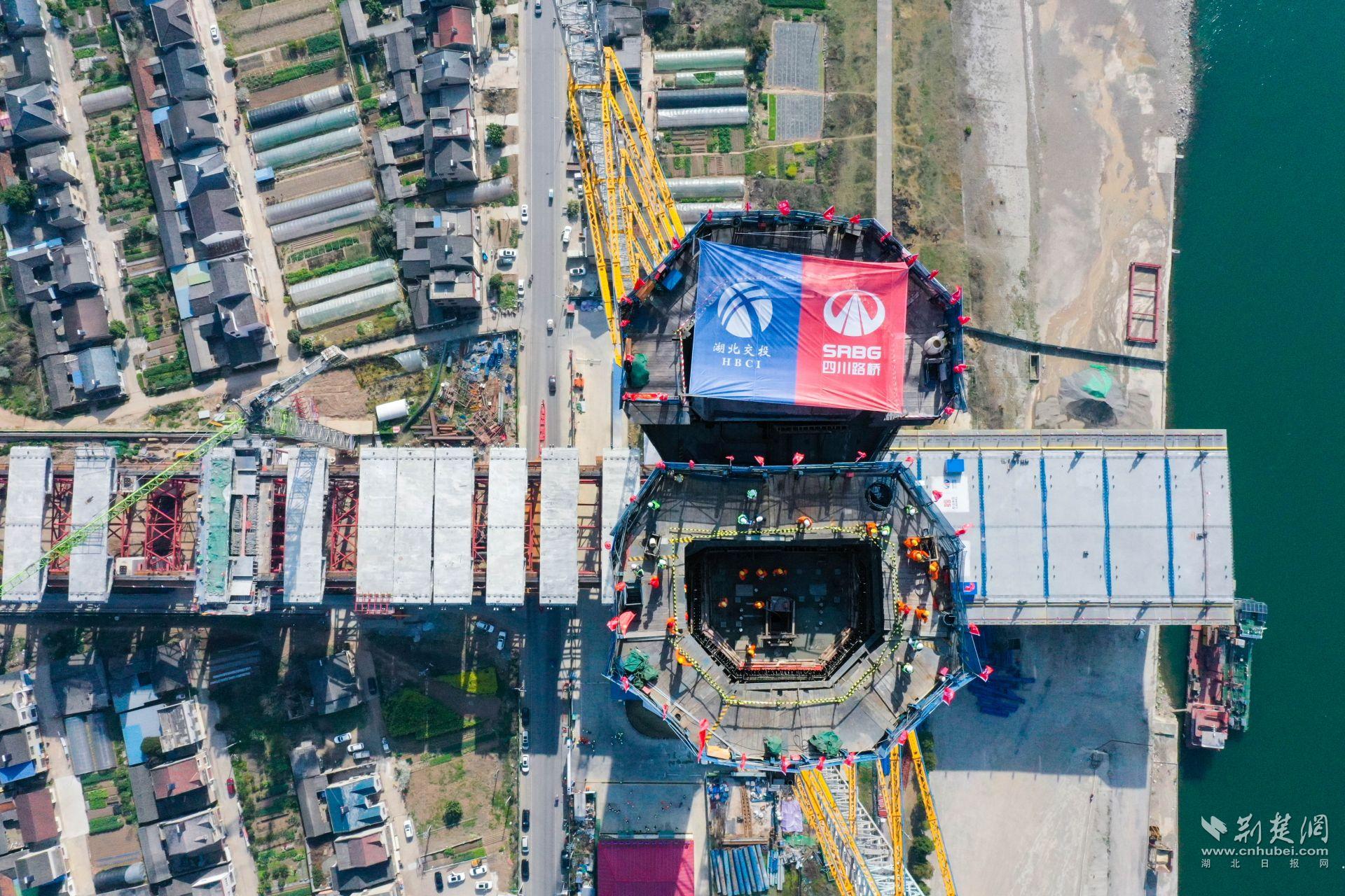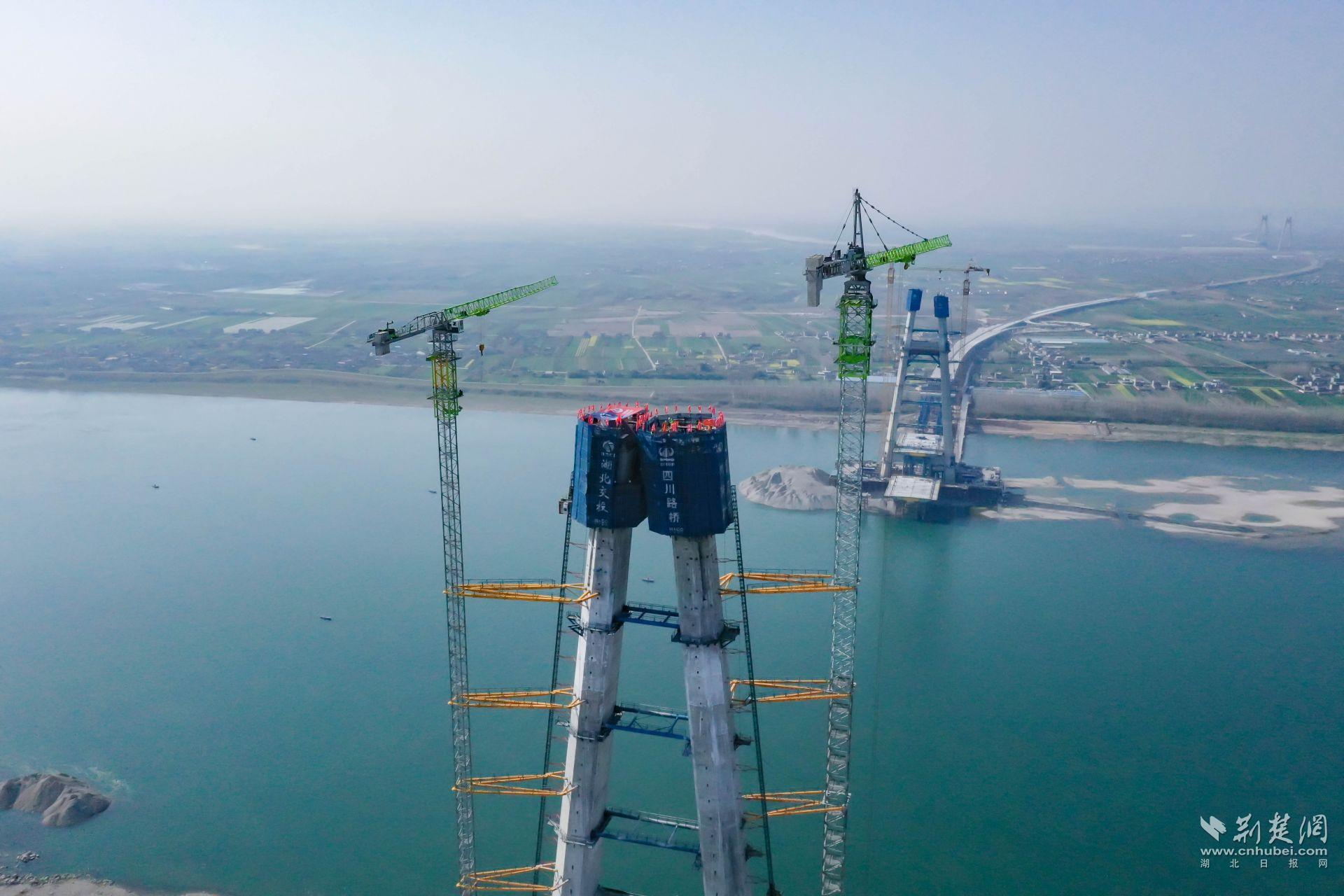 2022年9月29日,大桥正式启动桩基开钻。此次封顶的北岸主塔高241米,采用A型结构设计,共使用钢材7178吨、混凝土27028立方米。