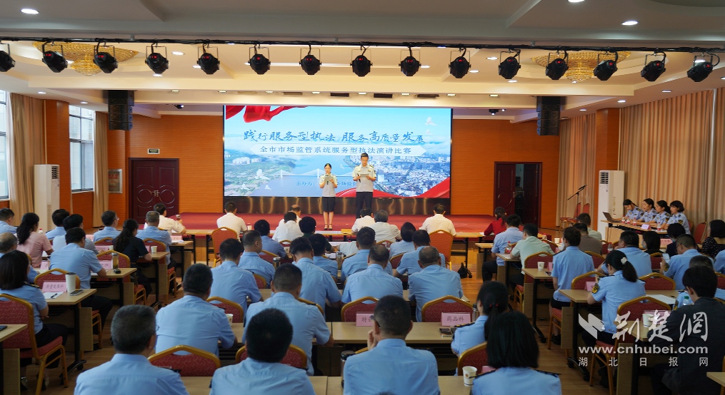 荆楚网(湖北日报网)讯(记者陈晏良、李海丹 通讯员张俊逸、赵界)6月27日,宜昌市市场监管局举办“践行服务型执法,服务高质量发展”主题演讲比赛。来自各县市区、宜昌高新区市场监管局的14名优秀选手展开激烈角逐,全市市场监管系统干部职工现场观摩比赛。