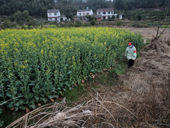 一夜春雨,猇亭区福善场村一片翠绿。油菜花上星星点点的雨滴,站累了一落到田里就不见了踪影。往年这个一年之计的时候,田间地头到处是忙碌的人们。今年这个时节却是别样的风景。
