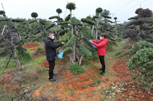 抗疫,还是村民们第一关心的事情。春耕,也是村民们关心的事。俗语称,“人误地一时,地误人一年”。村党支部书记邓发国安排集中摸清了村民对农资的需求,为13户代购回4.6吨柑橘复合肥和种子。村民们以家庭为单位,分散展开了春耕。村里杜鹃大王杨云川、王芹夫妇,每年要卖70万株杜鹃苗,春分后,苗圃里十几万株去年夏天扦插的杜鹃苗需要移栽,他们没有向村里提出雇工要求,自己下田干了起来。盆景大户王剑,眼下盆景已经开始萌动,常年雇工的他,早已和爱人埋头在80亩盆景地里。