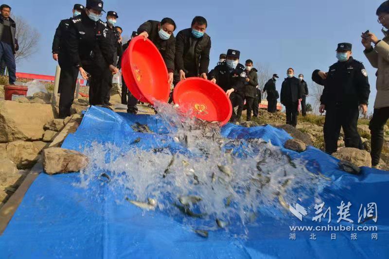 荆楚网客户端—荆楚网消息(记者曹霓 通讯员徐波、汪耀洲)12月31日上午,在枝江市顾家店镇关州公园,因在长江流域实施电捕鱼和收售非法捕捞长江鱼被长江航运公安局宜昌分局依法侦办的刘某、蒋某二人,在长航公安局宜昌分局,宜昌市葛洲坝人民检察院,宜昌市、枝江市农业农村局和顾家店镇政府的共同见证下,将自己购买的20万尾四大家鱼放流,以修复被破坏的长江生态环境。
