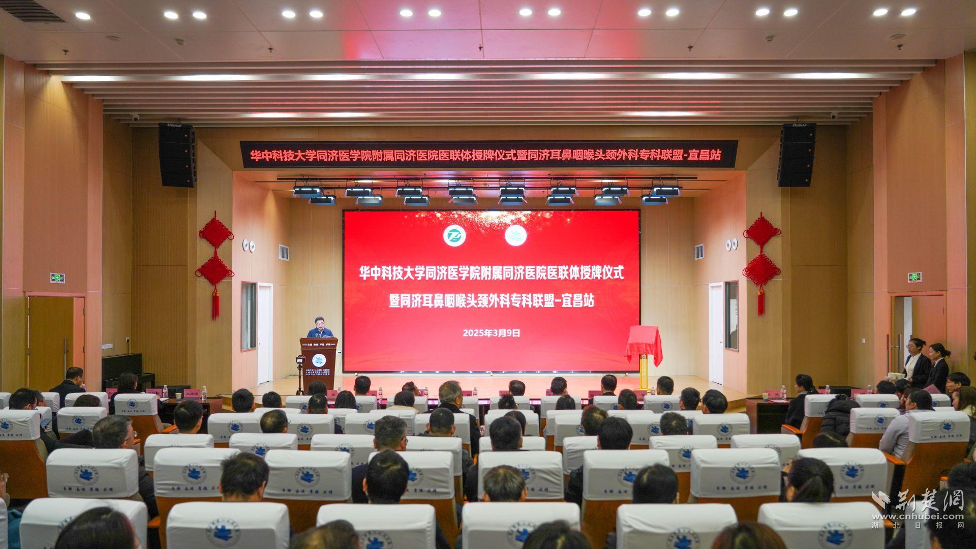 荆楚网(湖北日报网)讯(记者皮雪静、冯晓芊、李海丹 通讯员万文俊、舒可儿、黄星)3月9日,华中科技大学同济医学院附属同济医院医联体授牌仪式暨同济耳鼻咽喉-头颈外科专科联盟宜昌站在宜昌市第二人民医院(以下简称:市二医院)隆重举行,市二医院正式成为华中科技大学同济医学院附属同济医院(以下简称:武汉同济医院)医联体单位,市二医院耳鼻咽喉科成为武汉同济医院耳鼻咽喉-头颈外科专科联盟成员单位。这是两院从“勾手指”到“手牵手”的跨越式合作,宜昌地区更多患者将在“家门口”享受到武汉同济医院的优质医疗服务。