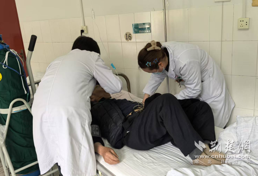 与此同时,医生将心电图发送至医共体宜都市人民医院胸痛中心联络群。宜都市人民医院胸痛专家黄杨华依据患者症状,明确急性心肌梗死诊断无误,在排除相关禁忌症后,果断下达溶栓指令。完成必要检查并获家属签字同意后,医护人员迅速对向爷爷实施静脉溶栓治疗。溶栓后,向爷爷胸痛症状显著缓解,生命体征趋于稳定。
