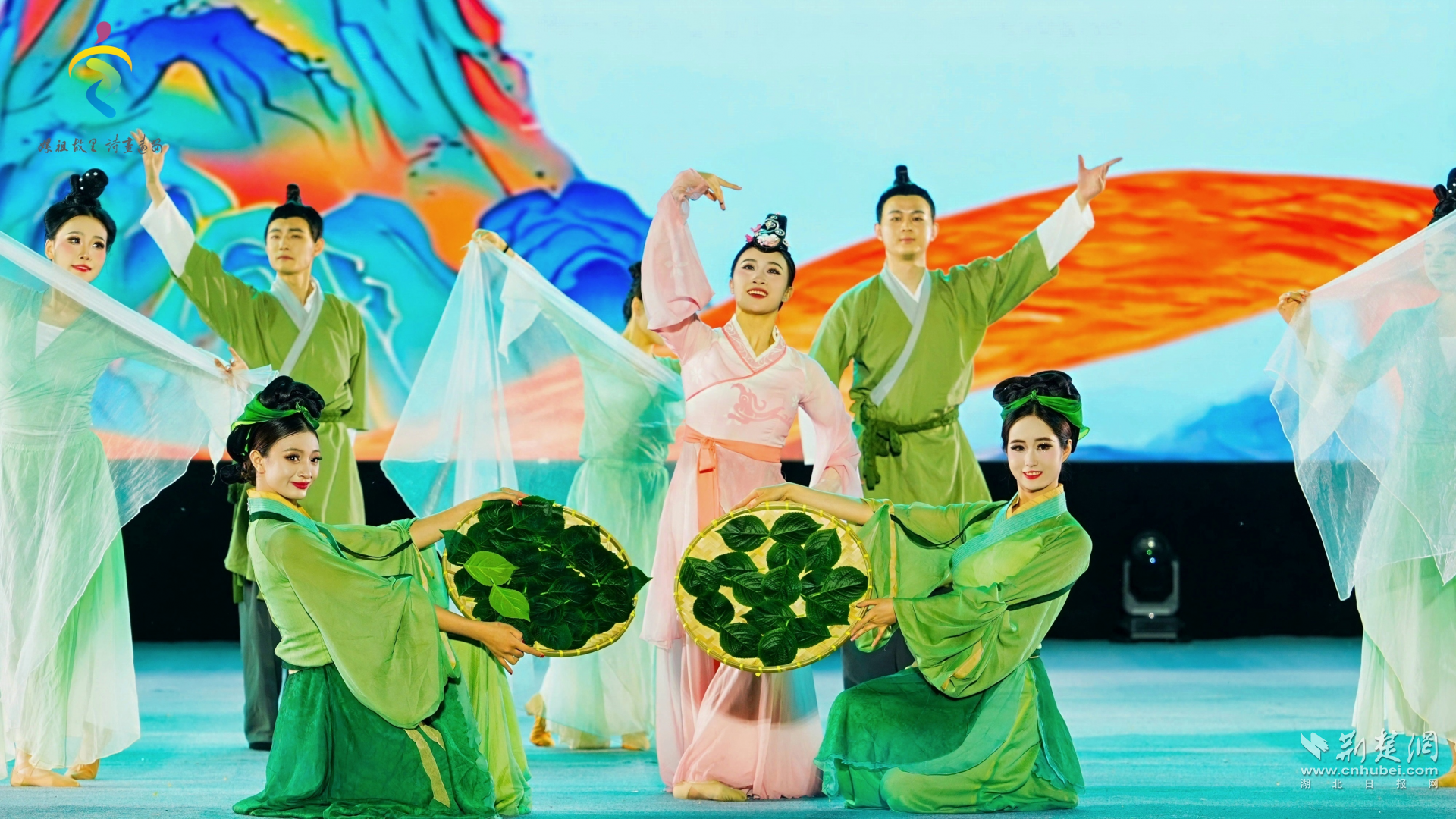 晚上7时30分,一段精彩瞬间的快闪视频点燃全场期待,情景歌舞秀《嫘祖始桑》正式拉开帷幕。舞者以翩跹身姿演绎嫘祖教民养蚕缫丝的千古传奇,丝绸长卷翻飞间,华夏文明的悠远记忆跃然眼前。