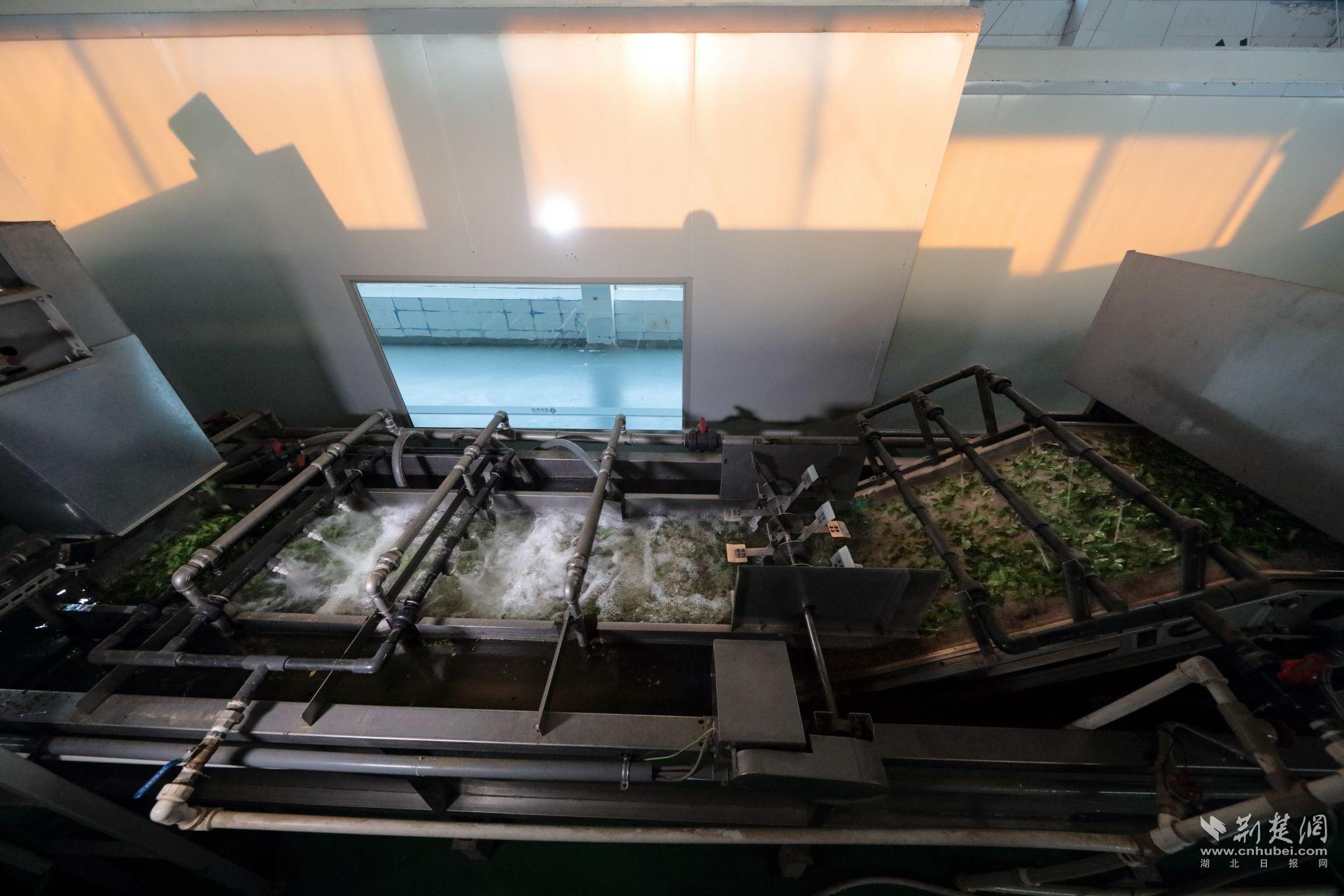 鲜叶智能清洗中。