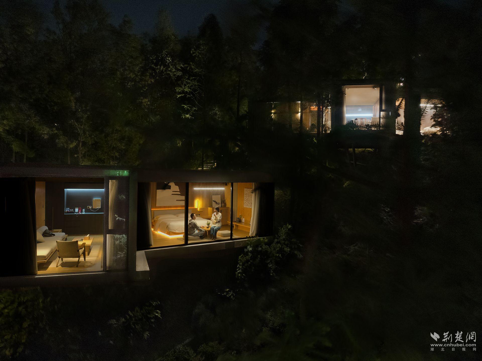 湖北文旅集团依托邓村10万亩高山茶园和大老岭国家级自然保护区生态资源,从2019年开始在邓村建设三峡茶旅小镇。项目总规划面积170余公顷,总投资30亿元,坚持以茶促旅、以旅兴茶,围绕邓村老国营茶场文脉,在茶山中打造田园综合体,先后投建了千山云舍木屋酒店、千山月舍温汤主题酒店、创客公寓、展示中心、艺术中心、户外野营俱乐部等高端度假项目,配套山顶无边泳池、大地厨房、乡村茶创空间、旅拍馆等体验业态,形成了乡村野奢旅居度假目的地,吸引了来自全国各地的游客。