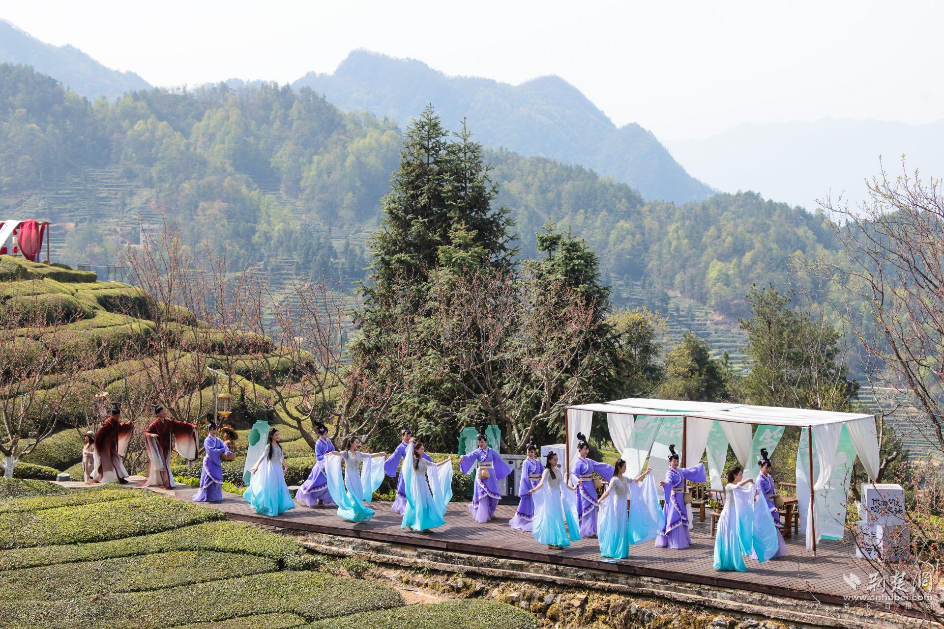 春姑娘们在邓村的云上茶山翩翩起舞。