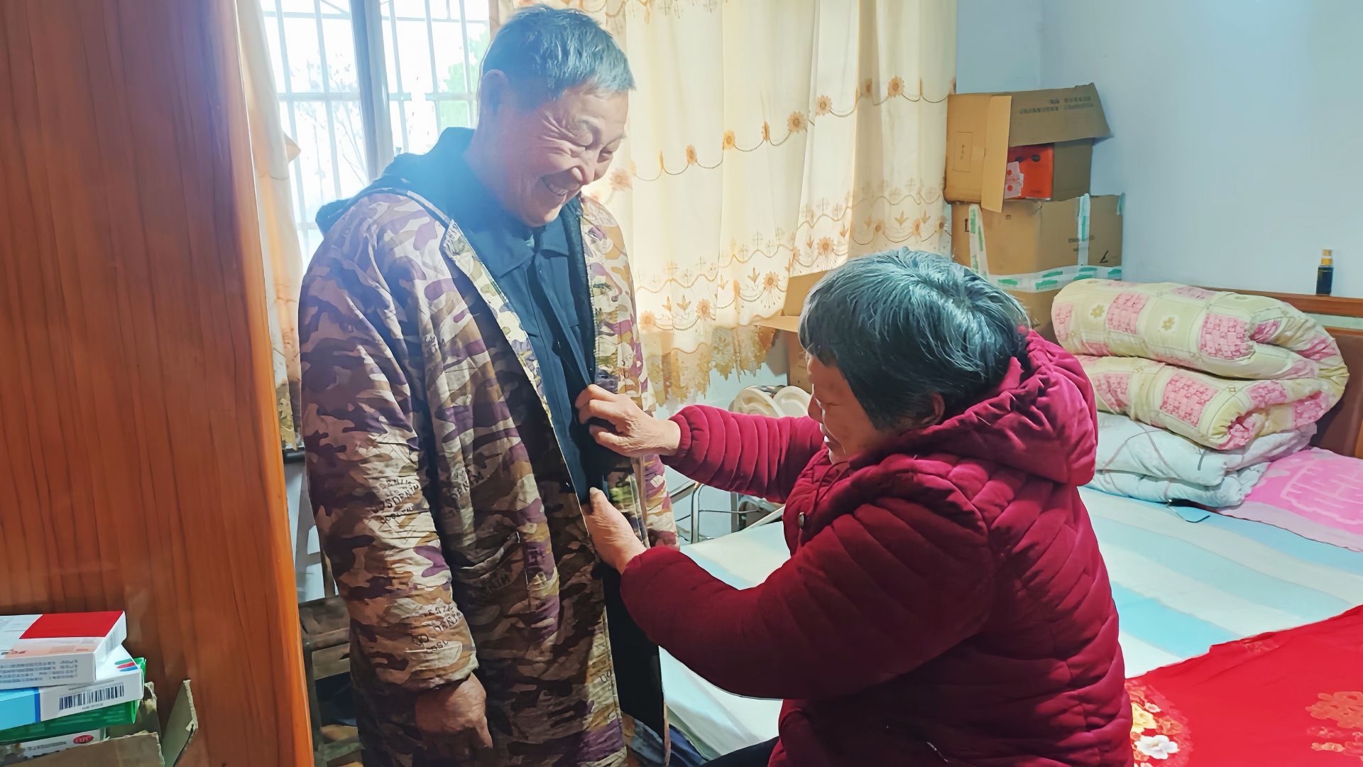 90多岁的公公方秉科行动不便,即使自己也是三级肢体残疾,陈红兰依旧十年如一日悉心照料,剪指甲、端汤药无微不至。2023年老人感染新冠住院,面对聋哑丈夫和小叔子无法沟通的困境,拄着拐杖的她毅然承担陪护重任。每天颤巍巍挪步送饭,忍着腿痛端屎端尿。