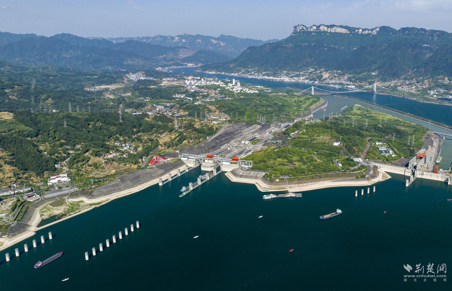 5月5日,往来船舶有序通过三峡大坝五级船闸。(通讯员 周仕伟 摄)