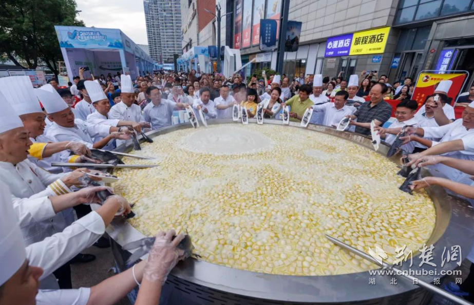 活动现场,最引人注目的当属直径3米的巨型肥鱼火锅,锅内煮满肥鱼、鱼糕、鱼丸和鱼面。在热烈的倒计时声中,宜昌市烹饪协会的10多位烹饪大师共同揭开锅盖,奶白色的鱼汤翻滚沸腾,浓郁的香气瞬间弥漫整个广场。市民游客们排起长队,争相品尝这道宜昌特色美食。
