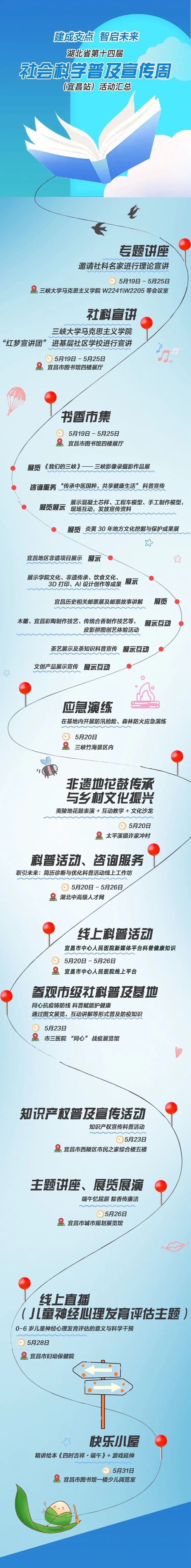 5月20日,2025年湖北省社会科学普及宣传周主会场将在宜昌开展。本次宣传周以“建成支点 智启未来”为主题,非遗展演、普法宣传、理论宣讲情景剧展演等十余项社会科学普及活动将轮番举行,亮点纷呈、精彩不断。