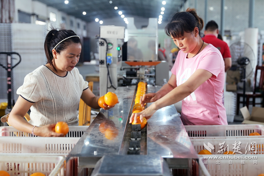 荆楚网(湖北日报网)讯(通讯员 刘一鸣)6月17日,宜昌市夷陵区鸦鹊岭镇宜昌洋红农贸有限责任公司的厂房内,刚采摘的新鲜夏橙在流水线上有序流转,洁净的水流褪去果实表面的尘埃,智能分选设备通过色泽、大小、糖度等维度精准分级,工人们指尖翻飞为橙子披上包装。流水线末端,一箱箱码放整齐的夏橙即将启程发往泰国市场。