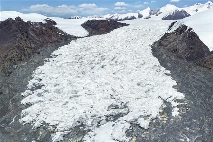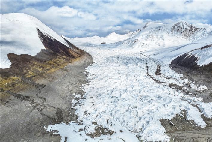 5月25日拍摄到的姜根迪如南支冰川。冰川宽1.6公里,长12.4公里,整条冰川相对破碎。