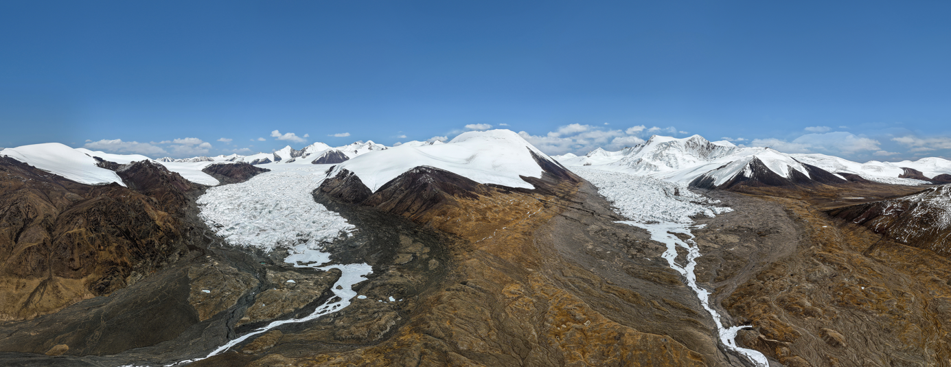 5月25日,长江正源——姜根迪如冰川。位于各拉丹冬雪山(青海省唐古拉山乡境内南部)西南部,由南(图中靠左)北(图中靠右)两大冰川构成。数百年以前,南北两条冰川的末端连在一起,由于全球气候变暖,冰川逐年退缩,两条冰川相互分离。近三十年间姜根迪如冰川已后退600多米。2025年4月,南北两大冰川已经完全退至中间山体后面。