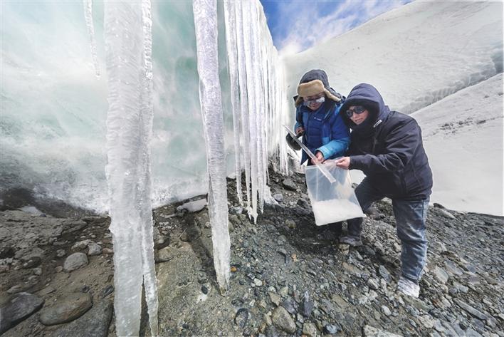 南京水利科学院科技工作者在姜根迪如取冰川样本。