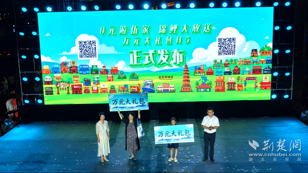 最令人受瞩目的“0元游伍家 锦鲤大放送”环节,瞬间点燃现场激情。随着中奖号码宣布,两位幸运儿获得包含高端酒店住宿、景区门票、非遗体验券等近30项权益的万元大礼包。