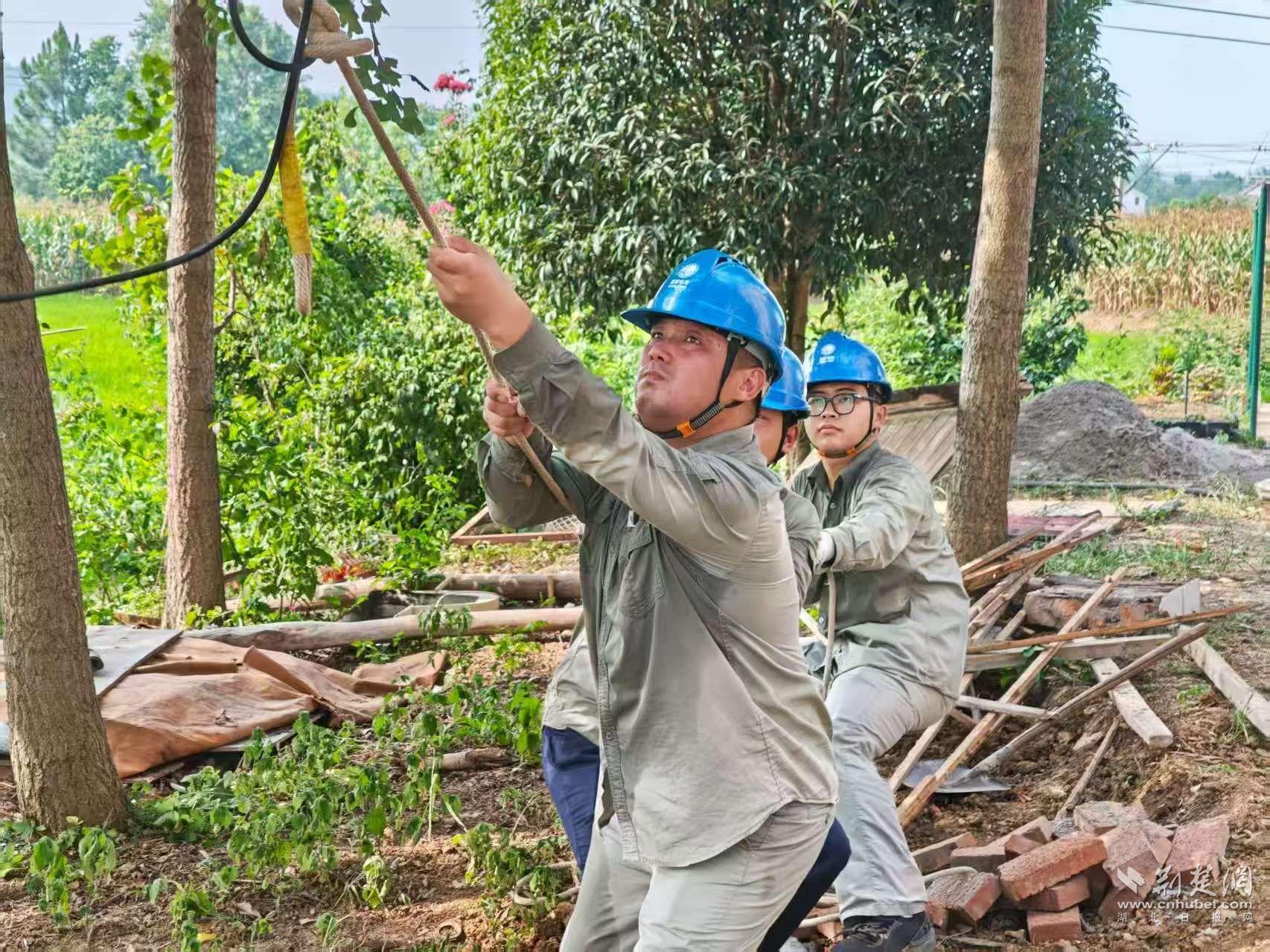 荆楚网(湖北日报网)讯(通讯员 徐家睿)7月15日8时许,气温已经高达37度。在当阳市淯溪镇洪桥铺村,国网当阳市供电公司作业人员正穿着早已湿透的工作服,头顶烈日爬上电杆架设低压线路,解决周边住户低电压问题。