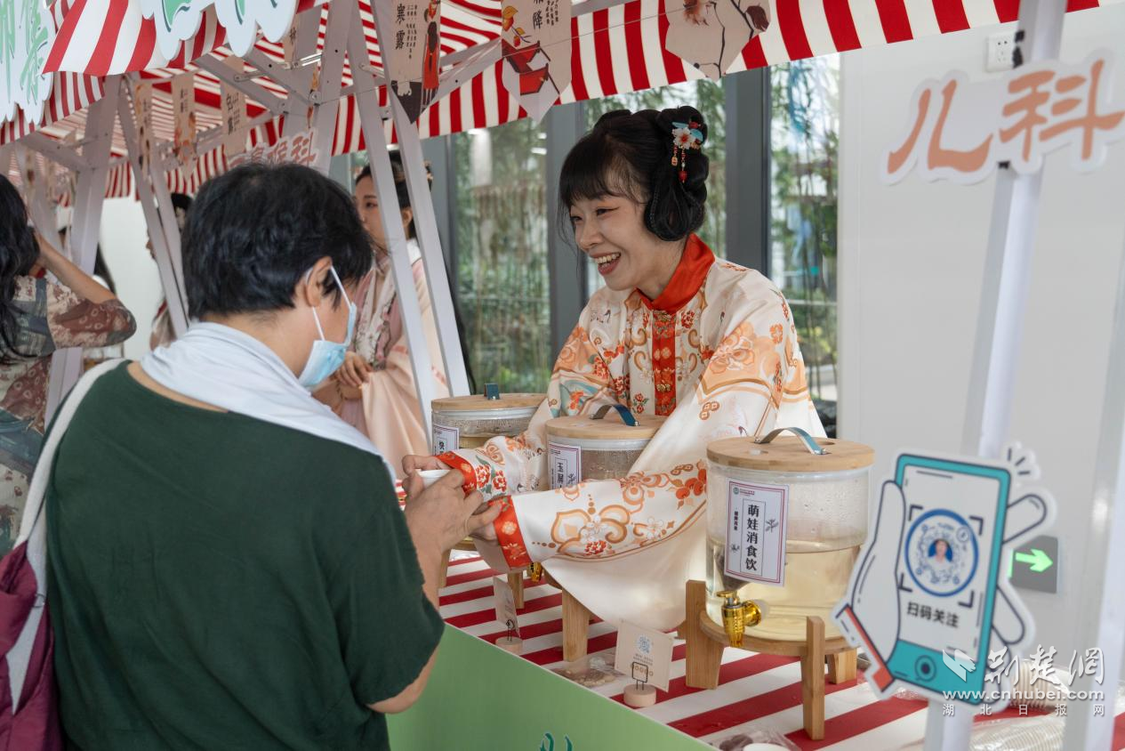 现场精心打造杏林市集与“杏林养生坊”,设置12个体验区、17个展位,展示34款中医药养生产品,为市民奉上了一场融合节气养生智慧与中医药文化的健康盛宴。