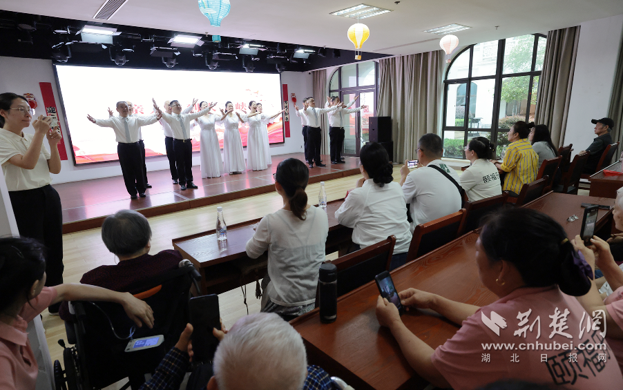 荆楚网(湖北日报网)讯(通讯员李亚隆)8月12日,宜昌三峡风合唱团走进葛洲坝颐福乐园养老院,开展“银铃行动”公益演出。一首首熟悉的歌声,深深触动了曾参与葛洲坝工程、三峡工程建设的老建设者们,激起了他们的强烈共鸣。据悉,这家养老院所在的社区名为 “英雄山社区”,这里居住着许多曾参与国家重大工程建设的老一辈建设者。