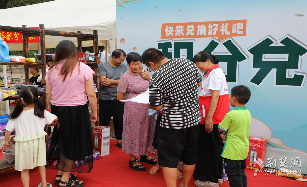 活动现场设置了积分兑换专区,九龙村移风易俗积分排名前六的村民依次上台,通过“玩转罗盘”抽奖方式兑换电饭煲、粮油、日用百货等实物奖励,并抽取多名幸运观众。村民曾大姐手捧刚兑换到的奖品,高兴地说:“平时打扫房前屋后、参加村里志愿活动都能攒积分,没想到真能换到东西,以后更要好好干!”积分制让文明行为“看得见、摸得着”,激发了村民主动参与乡村治理的热情,成为推动乡风文明建设的有效抓手。